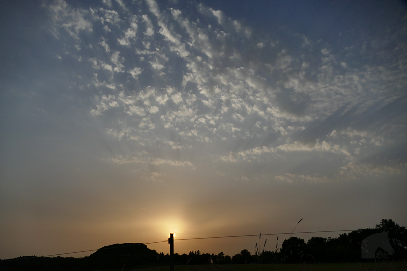 Gestern abend (27.06.), gegenüber der untergehenden Sonne. Zuerst etwas Cirrostratus mamma in Weiß: