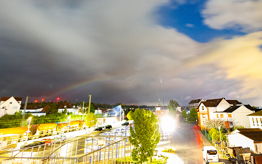 Heute Abend gab es in Kirchhain ein paar Regenbögen oder besser Fragmente von Regenbögen. Hier das mit Abstand beste Exemplar: