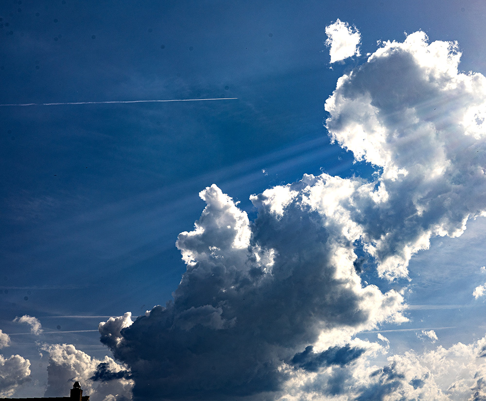 Ich habe noch ein paar Schattenstrahlen von gestern an teils ordentlich aufquellenden Cumuli: Vermutlich hat da neben der feuchten Luft auch der Saharastaub mitgespielt.