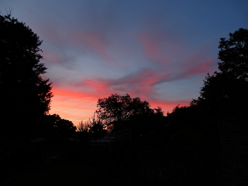 Abschied vom Juli mit einem kräftigen Abendrot, aufgenommen am 31.07.2018 um 21.35 MESZ in der Bonner Südstadt.