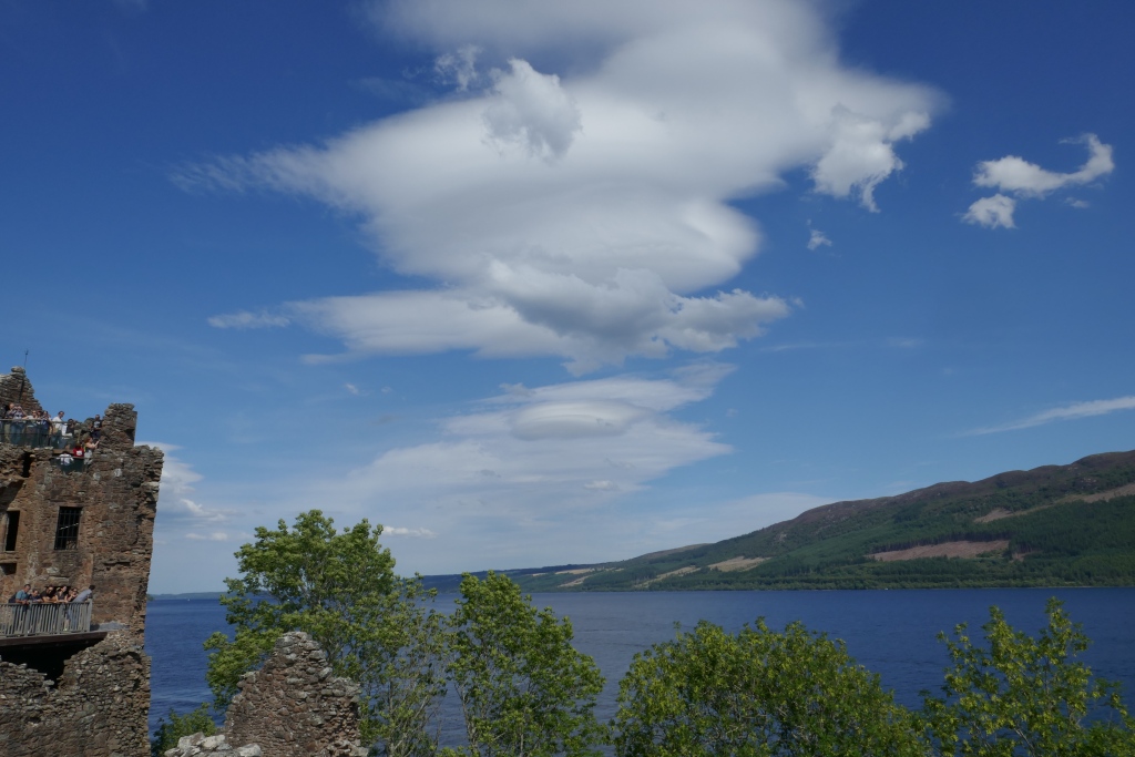 ich möchte Euch einen Nachtrag vom 27.7. aus Schottland über dem Loch Ness zeigen. Wir haben Nessie nicht gesehen, aber vermutlich sind dies wohl Altocumulus lenticularis.