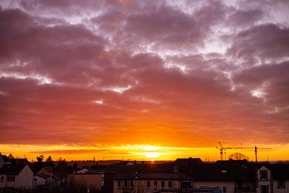 Am heutigen 30.12. gab es in Kirchhain zum Sonnenaufgang etwas Morgenrot an Stratocumulus: