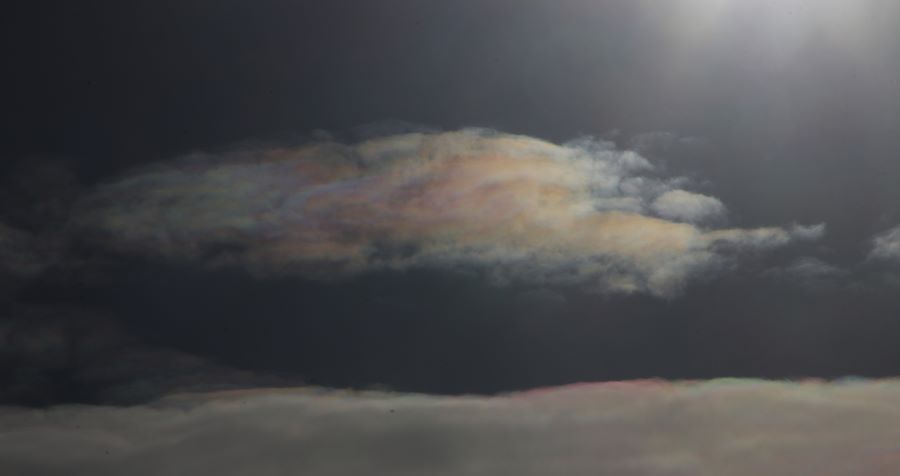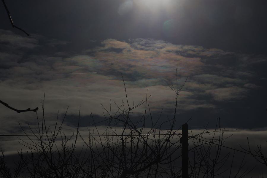 Später habe ich einige Cumulus fractus-Wolken mit irisierenden Rändern entdeckt. Der Himmel war voller Cumulus fractus- und Cumulus mediocris-Wolken, die alle paar Minuten Fluctus bildeten. Es war praktisch ein Festival von Cumulus-Fluctus (Kelvin-Helmholtz). Da es sich jedoch um einen Bereich handelt, der optischen Phänomenen gewidmet ist, poste ich nur die Irisierung. Ich schaue unter „Off Topic” nach, ob es ein Thema zu Kelvin-Helmholtz gibt. Campania, Italy. 31.12.2025-13.57.
