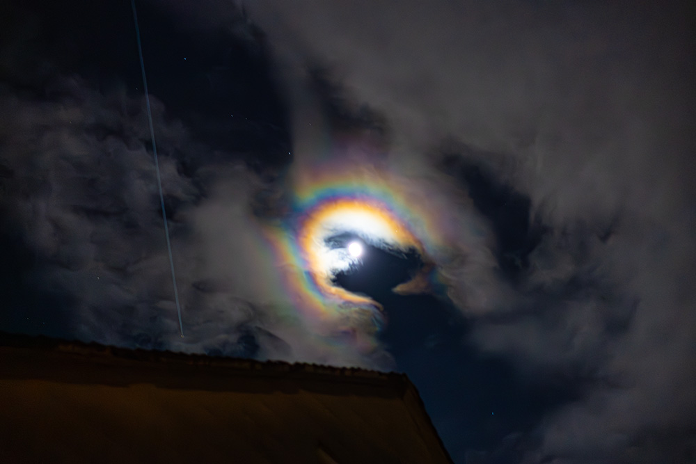 So, die vermutlich letzten atmosphärischen Erscheinungen in Kirchhain: am Abend gab es am Mond einen schönen Kranz: