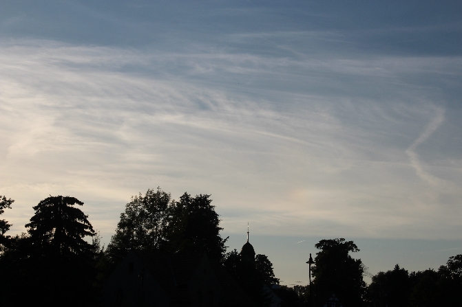 Am 21.08. abends bei Fulda. Ich dachte, ich werde als Erstbeschreiber von Cirrostratus undulatus berühmt. Doch natürlich war es auch hier die Rauchwolke.