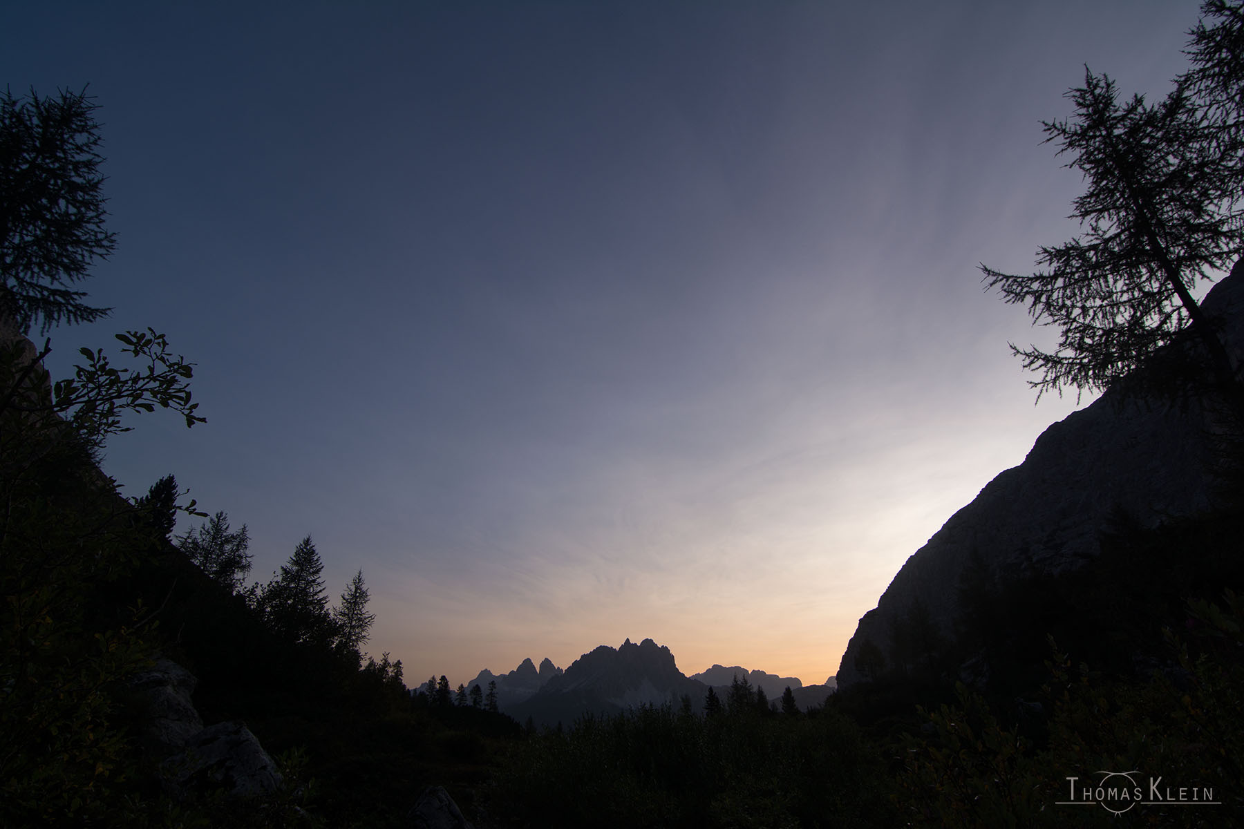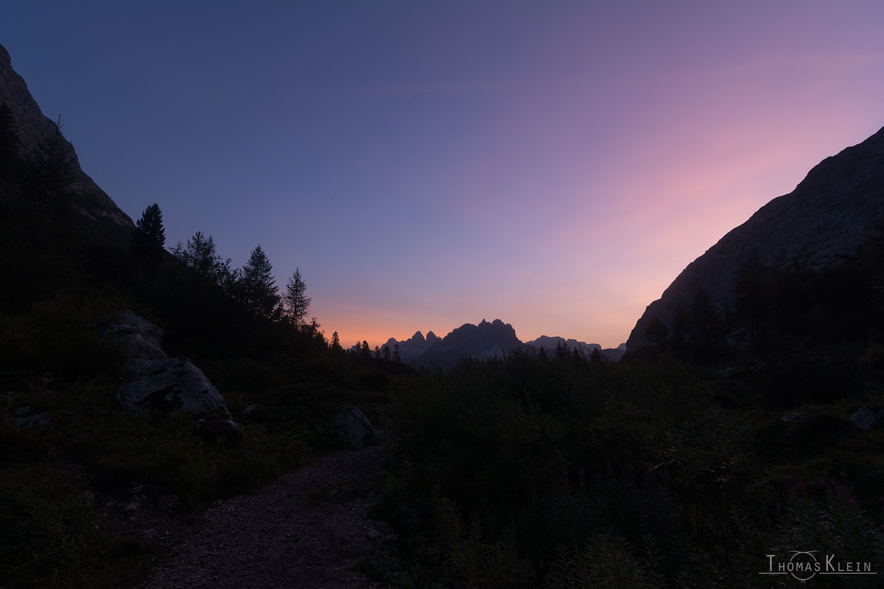Das nächste mal, dass ich sie sehen könnte, war am Morgen des 27.08. in den Dolomiten in Italien! Bei einem Sonnenstand von -8,5° war um 5:41 Uhr bereits eine purpurfarbene Dämmerung zu sehen, die Farben waren unüblich.