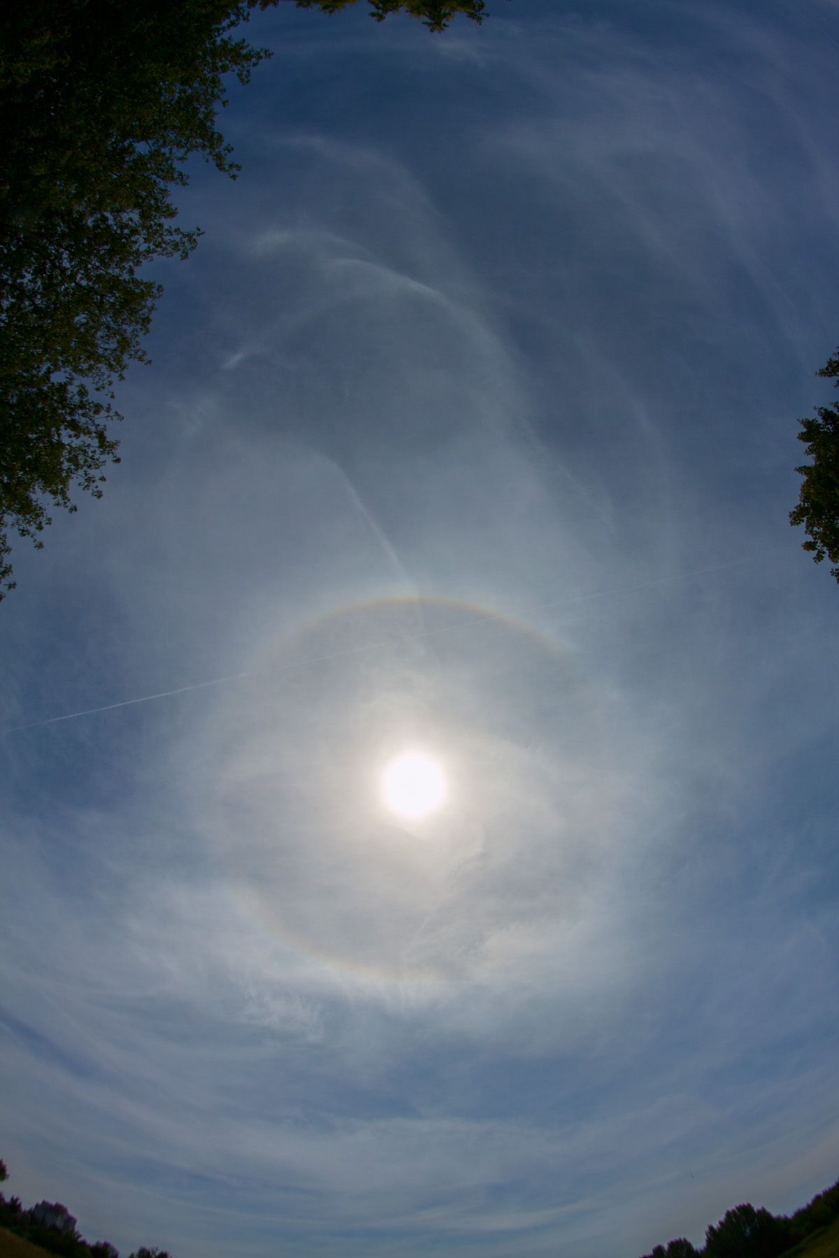 Kondensstreifenschatten "kämmt" 22°-Ring, 10.51 Uhr