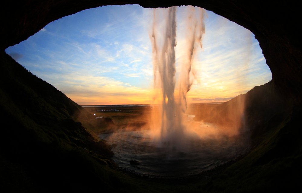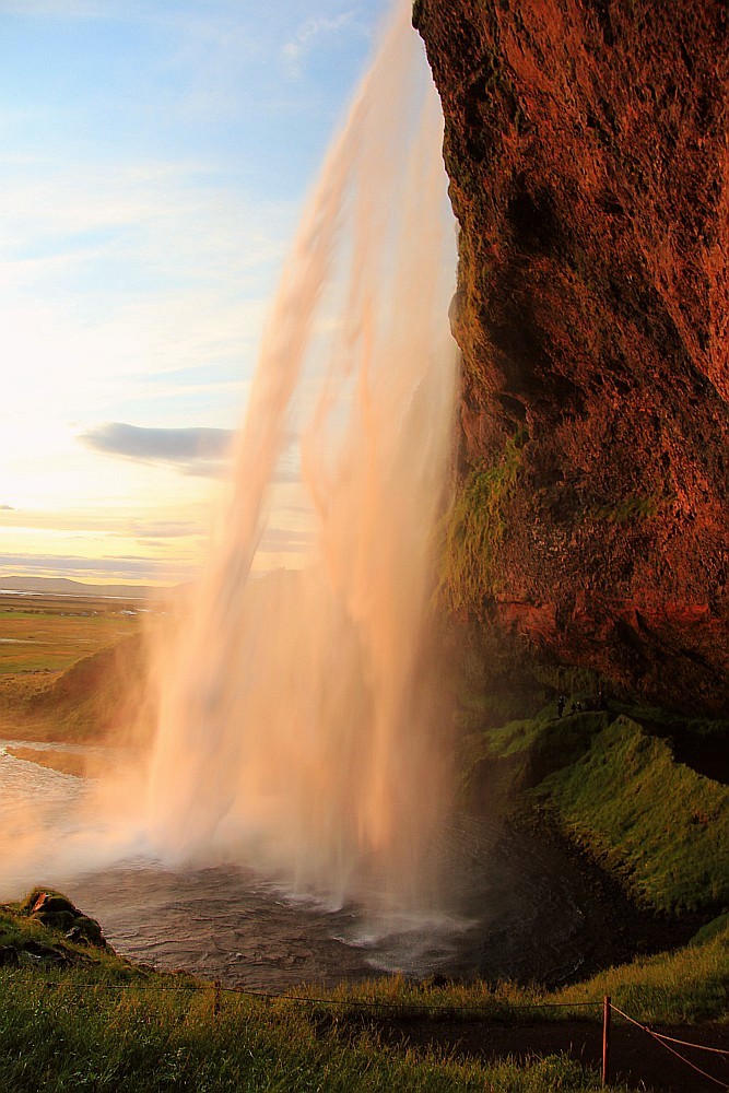 Verkehrsmäßig günstig an der Rinstraße liegt der Seljalandsfoss. Da wir nur ca. 15 Kilometer entfernt für eine Woche ein Ferienhaus gemietet hatten, konnten wir auch bis zum Sonnenuntergang die Regenbögen bewundern.