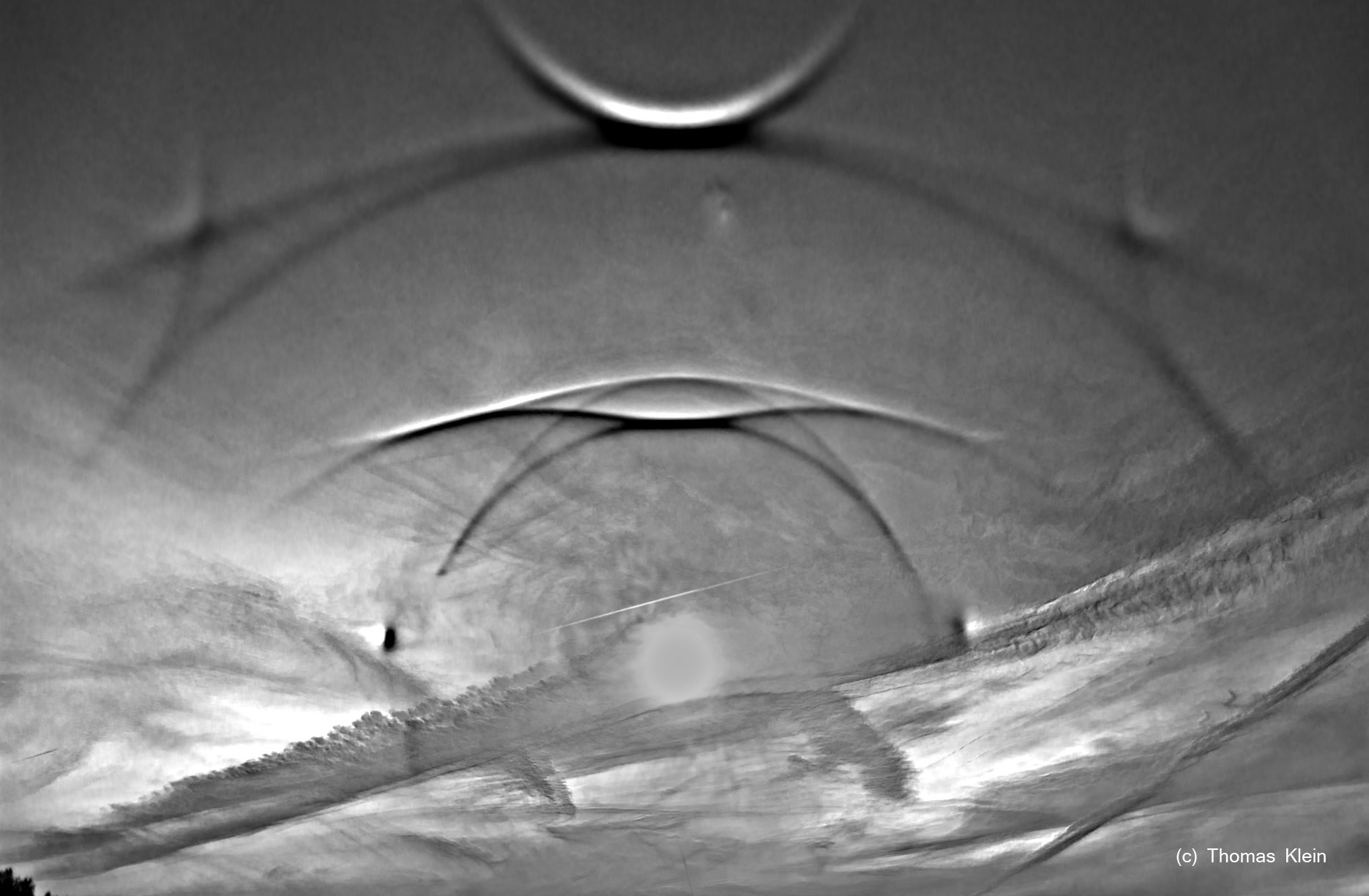 Es waren bereits am morgen immer wieder helle Nebensonnen zu sehen. Ich war also bereits auf der Hut, vor allem nach dem Mondhalo gestern abend. Kurz nach Mittag war dann das erste mal der Parrybogen + oberer Berührungsbogen zu sehen.