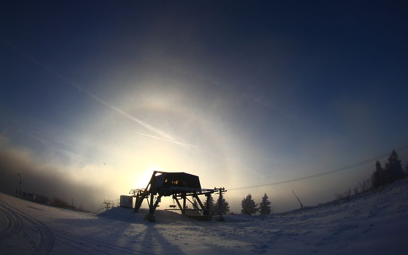 Pünktlich zum Halotreffen ist im oberen Erzgebirge der Winter eingezogen. Halos gab es zwar heute (abgesehen von einem schwächlichem Glitzern im 22°-Bereich) keine, aber man hat deutlich gesehen, daß daran fleißig gearbeitet wird. Vor allem die Temperaturen könnten ruhig noch 2-3 Grad fallen, der Rest paßt schon einmal perfekt!