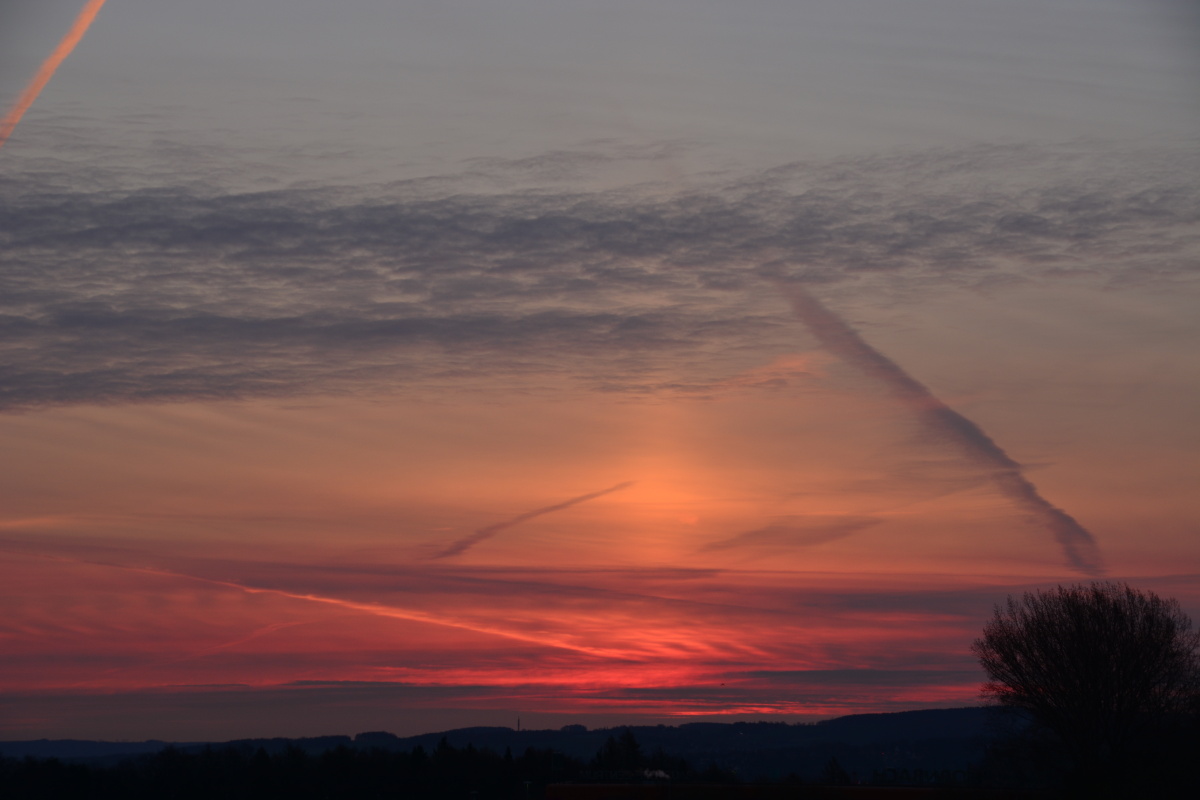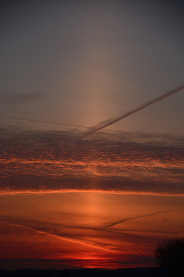 auch östlich von Magdeburg ein toller Sonnenaufgang - die Lichtsäule hab ich in der Eile auf dem Weg zur Arbeit kaum gesehen. Was mir aufgefallen ist, waren die interessanten Wolkenwellen (?) - leider nur das 17-50mm Objektiv dabei...