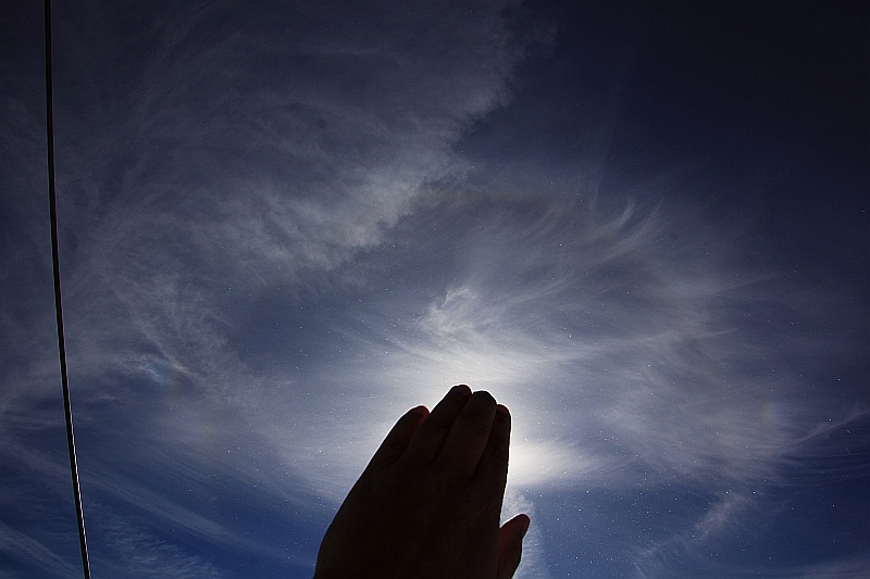 die Chancen für einen ZBH sahen heute Vormittag nicht schlecht aus. Aber zur Zeit des höchsten Sonnenstandes um 12.05 MEZ (61.1°) beherrschte Cirrostratus den Himmel und abnehmender Cumulus störte Anfangs noch sehr. Also Versuch Nr. 7 ergebnislos!