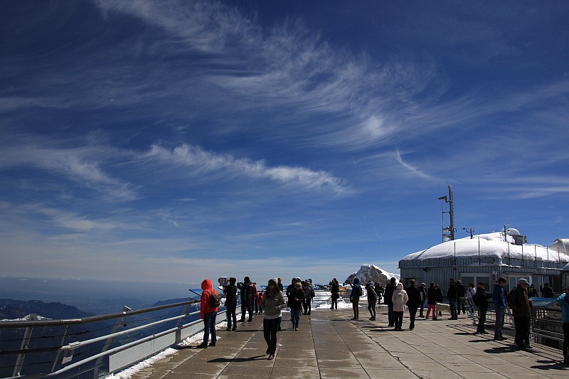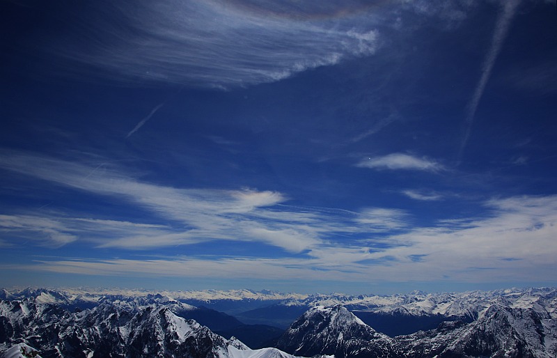 Ich habe den ZHB gestern auf der Zugspitze auch beobachten können. Zuvor gab es ab 07.20 MESZ (SH 17°) aber erst einmal Nebensonnen, die in Cirrus entstanden und durch aufgewirbelten Schnee im dreidimensionalen Raum verstärkt wurden. Das war an sich schon ein Erlebnis, wie die Nebensonne zwischen himmlichen Cirrus und demZugspitzgipfel hin und herwanderte. Leider hatte ich keine Zeit zu einem Video, was mich jetzt noch ärgert, denn die Bilder vermitteln den Eindruck keinesfalls.