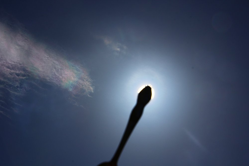 Wenn man das halbe Grad Durchmesser der Sonne hernimmt, war der Radius des Rings nicht größer als 1-2°. Ich bin mir auch sicher, dass sie mir durch die Lappen gegangen wären, wenn das Irisieren nicht gewesen wäre. Auch, wenn ich sie recht hell fand.