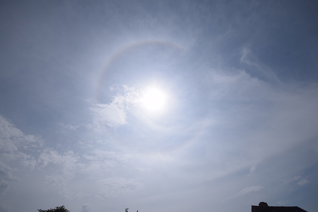 Ansonsten erschienen auch bei uns die cirrösen Eiswolken, an denen sich eine gleißend helle linke Nebensonne ausbildete: