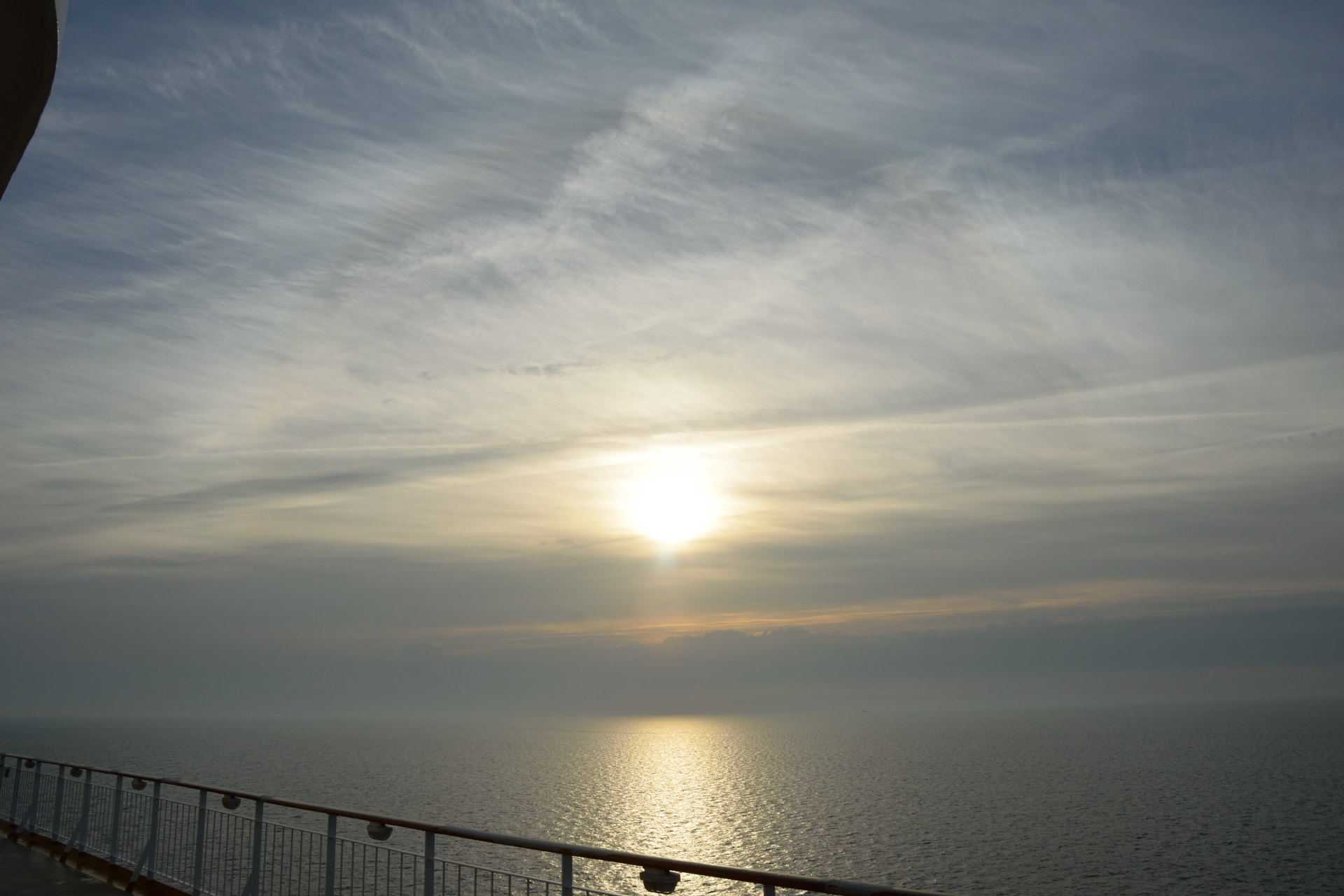 - im Oslofjord einen Teile von einem ganz schwachen 22°-Ring (die Bewölkung verdichtete sich gerade) - auf der Rückfahrt nach Kiel mitten auf der westl. Ostsee wieder einen 22°-Ring Am Abend davor gab es im Skagerak noch eine sehr farbige linke NS und einen großen Bogen eines 22er. Eine Kamera hatte ich aber nicht zur Hand. Außerdem musste ich mein Cocktailglas festhalten