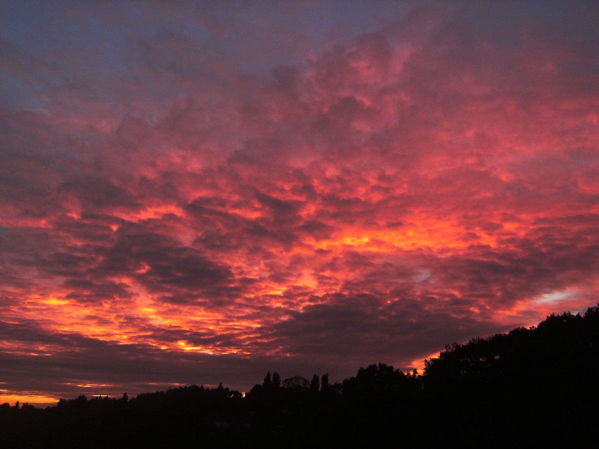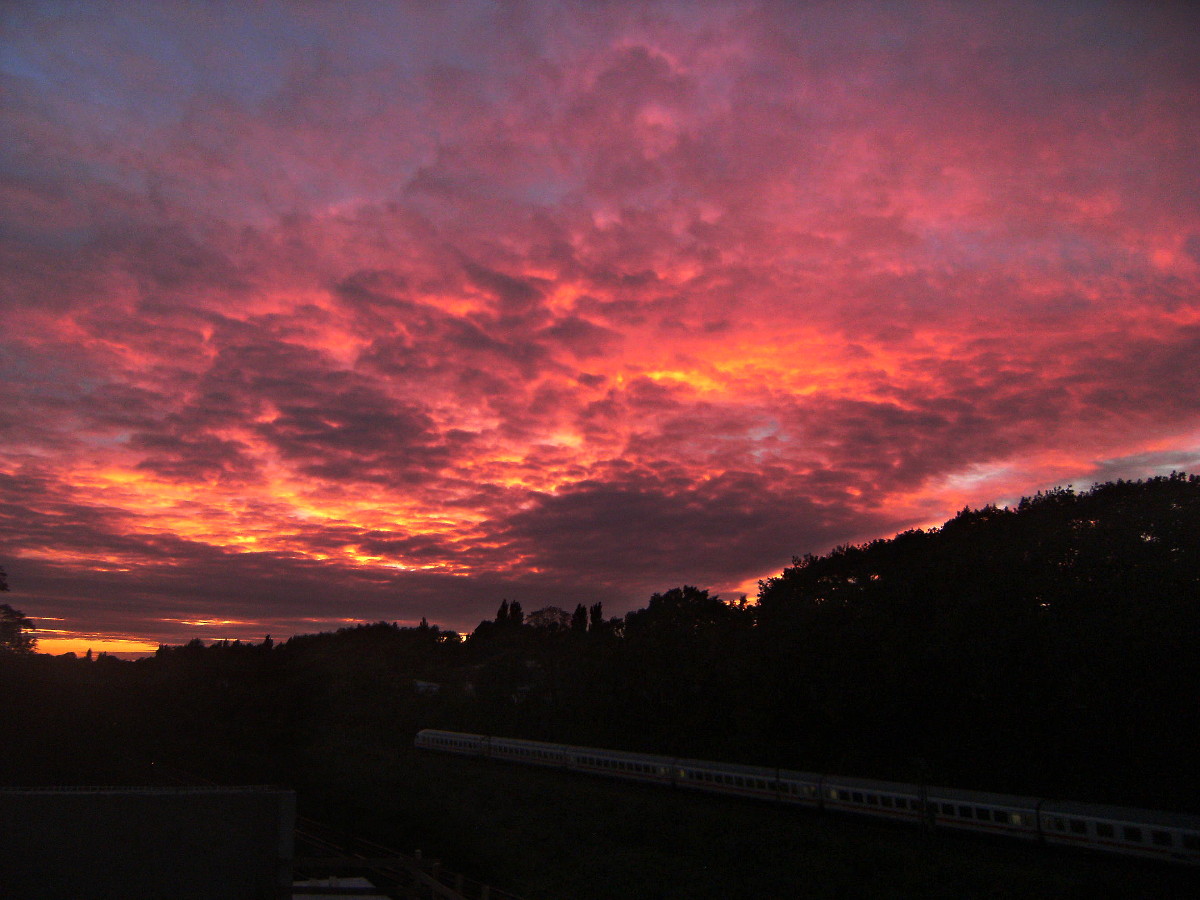 Gestern gab es über dem Ruhrgebiet zunächst ein paar irisierende Wolken: und dann ein phantastisches Abendrot mit leuchtenden Farben: