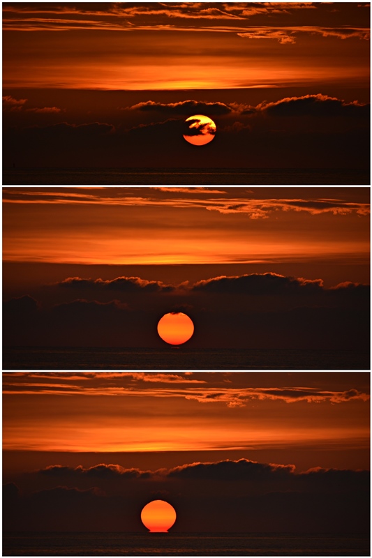 Tiefliegende Dunstschichten verpassen der untergehenden Sonne ein "Jupiteroutfit" (hatte eigentlich auf intensivere Himmelsfärbungen gehofft...).