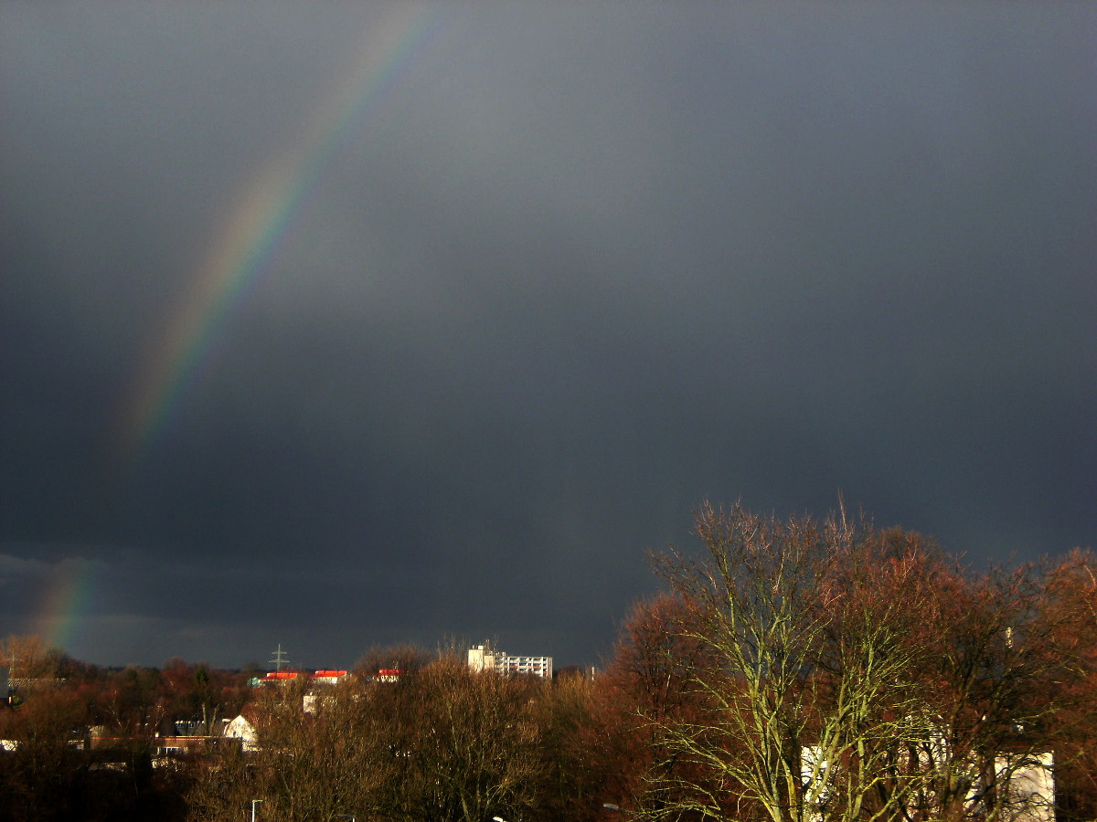 ich hatte am 12.03 ebenfalls schöne Regenbögen. Um kurz vor und kurz nach 18 Uhr zogen bei uns zwei Schauer durch (Landkreis Eichstätt, Bayern).