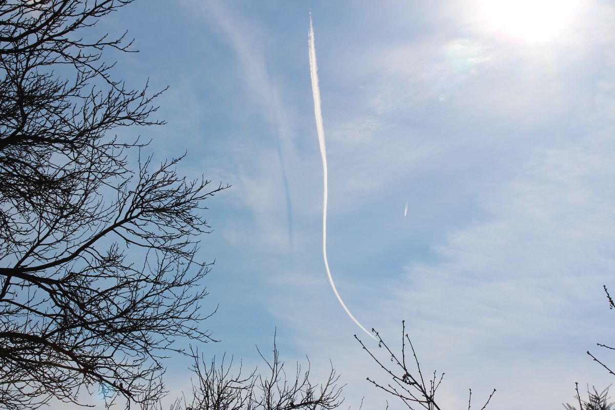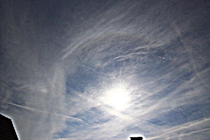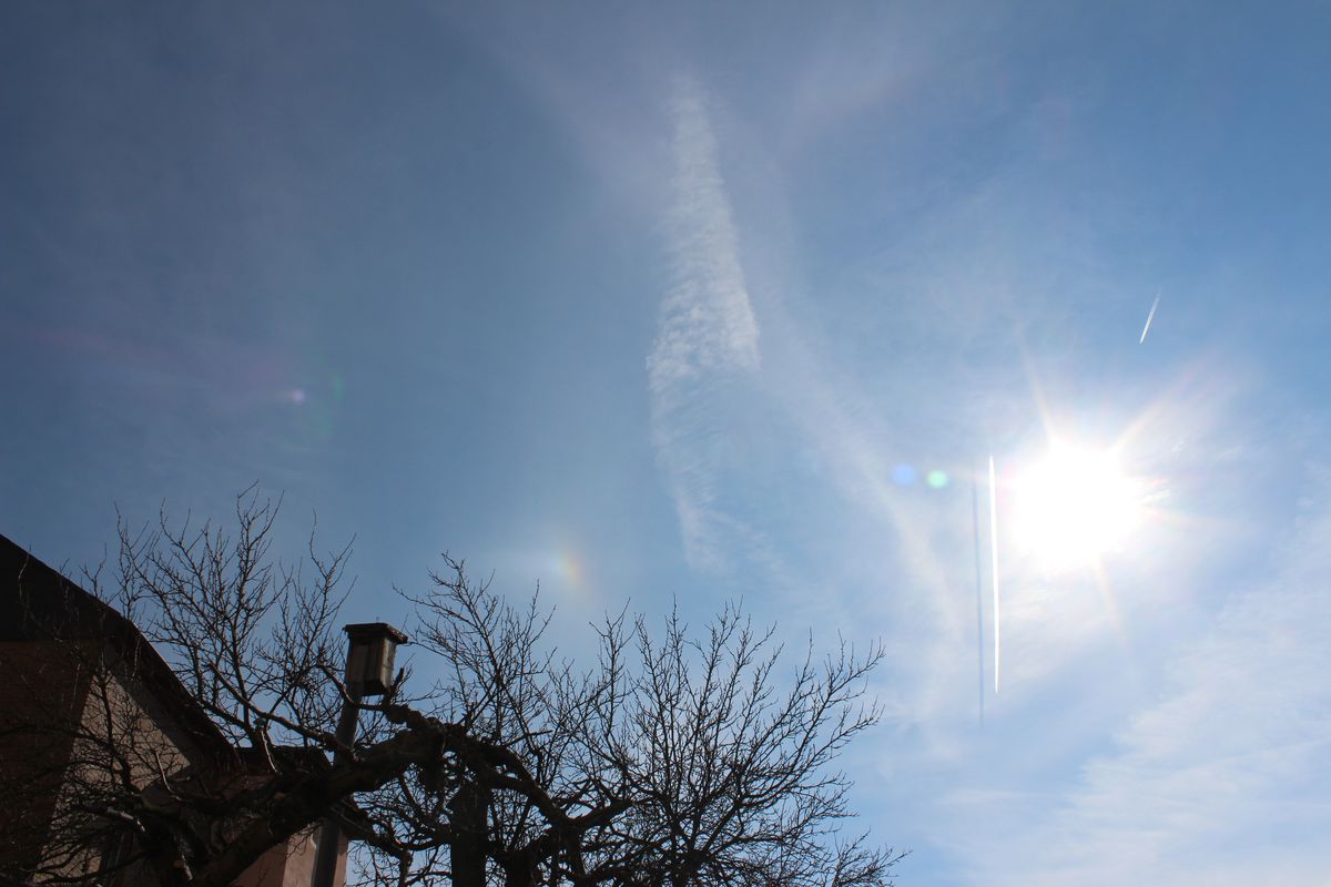 Nachdem sich der Halo weitestgehend aufgelöst hatte bildeten die Kondensstreifen einen zum Teil stark versetzten Schatten.