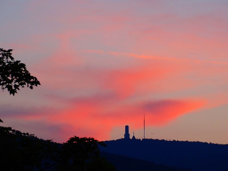 Abendrot über dem Großen Feldberg, aufgenommen am 26.05.2018 um 21:36 MESZ in Oberursel.
