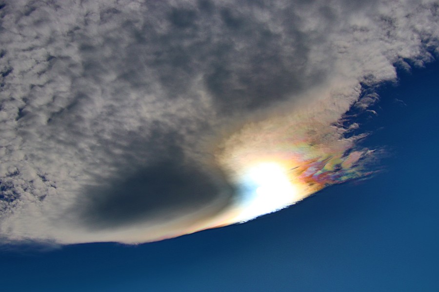 Heute gab es über dem Erzgebirgskamm geniale Föhnwolken, die zum Teil sehr schön irisiert haben. Hatte nur leider wieder keine richtige Zeit zum Fotografieren. Das Irisieren war zum Teil extrem hell und hatte sich total an die Föhnwolken angeschmiegt. Vielleicht hatte es Wolfgang ja ähnlich.