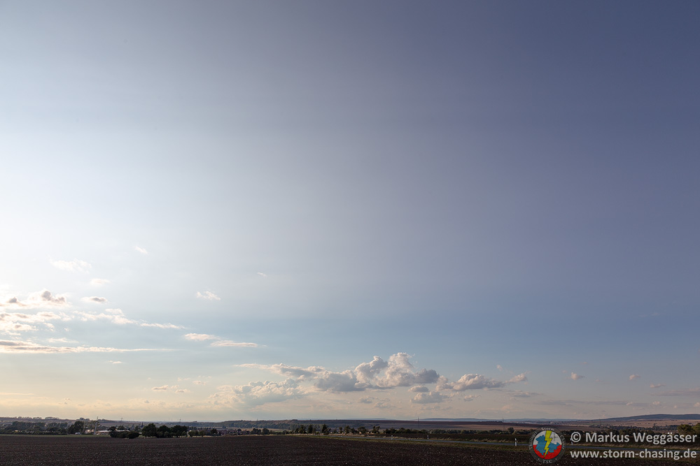 Heute am 23.08. war es morgens eher schon fast trübe. Richtig blauen Himmel gab es, wenn man so will, nur entgegengesetzt der Sonne.