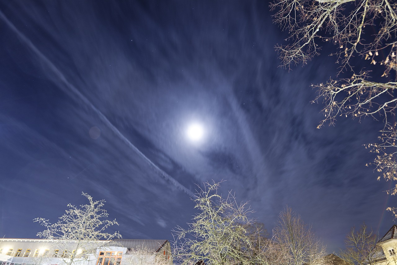 Nicht nur in Bayern gab es letzte Nacht Mondhalos. Ich habe hier auch einen gesehen. Den Hinweis bekam ich von einer Freundin aus Mülheim, die es wiederum von ihrem Freund aus Düsseldorf erfahren hat. Der Halo war also gestern abend in weiten Teilen von NRW zu sehen.