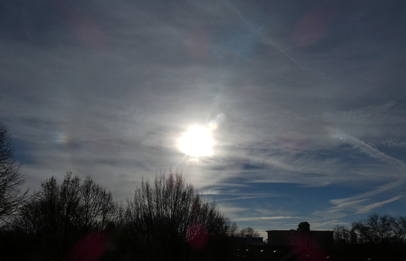 Und Heute Nachmittag helle Nebensonnen und schwacher 22°Ring.