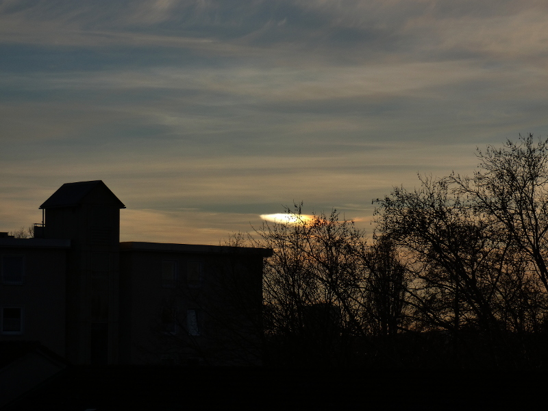 Heute waren in Bochum von Sonnenaufgang bis vor etwa 15 Minuten ständig Nebensonnen zu sehen. Besonders deutlich war dabei die Linke.
