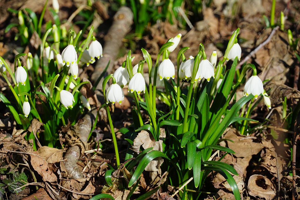 und, ja, es gab schon die ersten frühlingsknotenblumen, aber nur rechts, direkt am bach und mehr oder weniger in der sonne