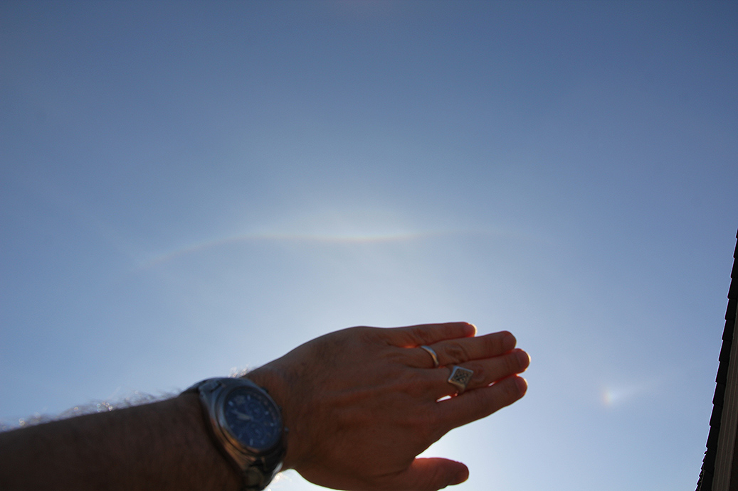 Auf dem ersten Foto ist noch der Parrybogen (https://www.meteoros.de/themen/halos/haloarten/ee27/) zu sehen und auf dem zweiten der Wegeners Gegensonnenbogen (https://www.meteoros.de/themen/halos/haloarten/ee56/). Die persönliche Häufigkeit bei Cirrenhalos ist hier etwa eine Sichtung in 10 Jahren.