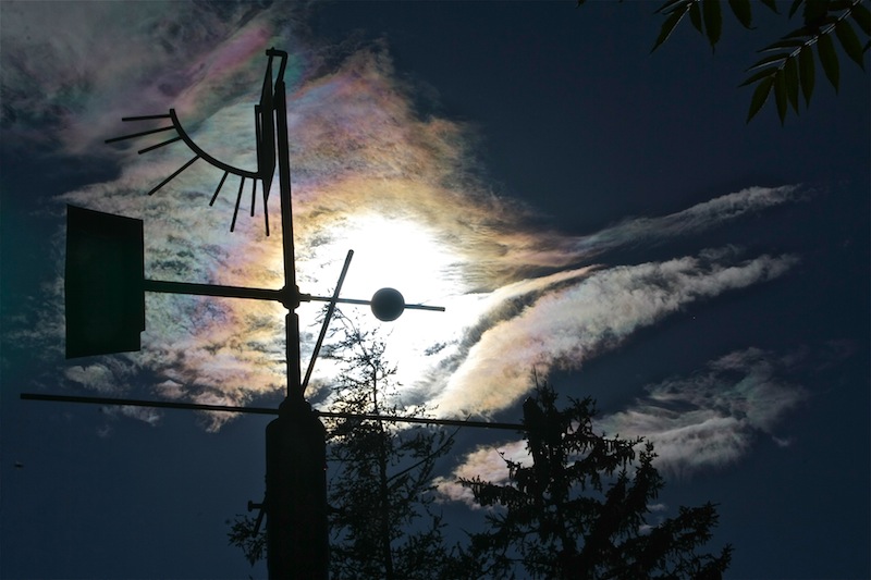 Dann eröffne ich mal den Juni mit irisierenden Altocumulus der meine alte Wetterfahne an einem fortgeschrittenen Nachmittag über dem Wiener Becken so richtig in Szene gesetzt hat:
