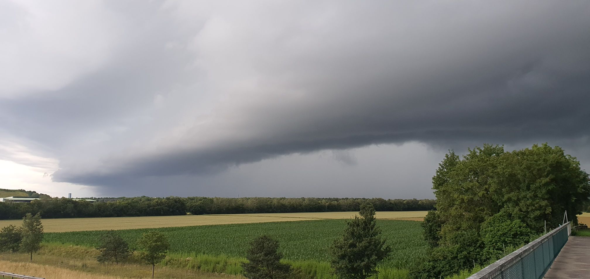 1. Juli, 19:26 auf der A9 vor Neufahrn: 15 min später auf der Rückseite des Gewitters, nachdem ich den Wolkenbruch durchfahren hatte. Und schließlich am Abend bei mir zu Hause