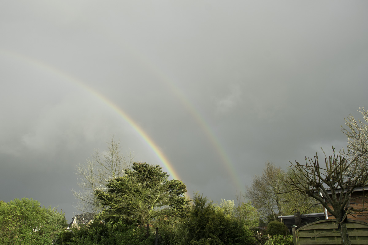 heute nachmittag war ich mit dem sony FE50mm makro im garten unterwegs, als nach einem kurzen schauer dieser regenbogen sichtbar wurde: