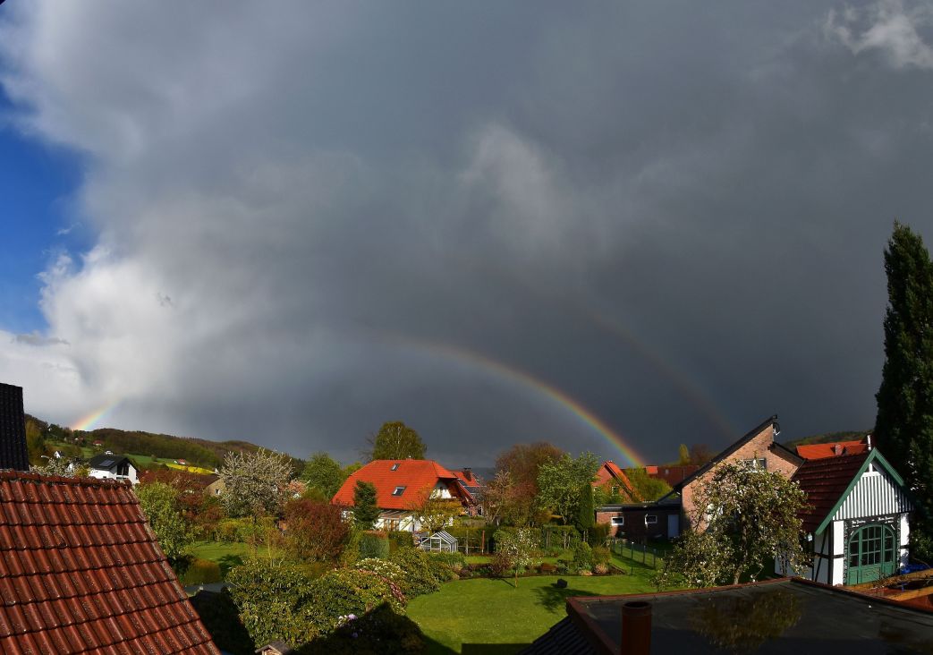 in den knapp 4 minuten zwischen den aufnahmen hatte sich der schwach visuell ichtbare 2. regenbogen links drüber aufgelöst...