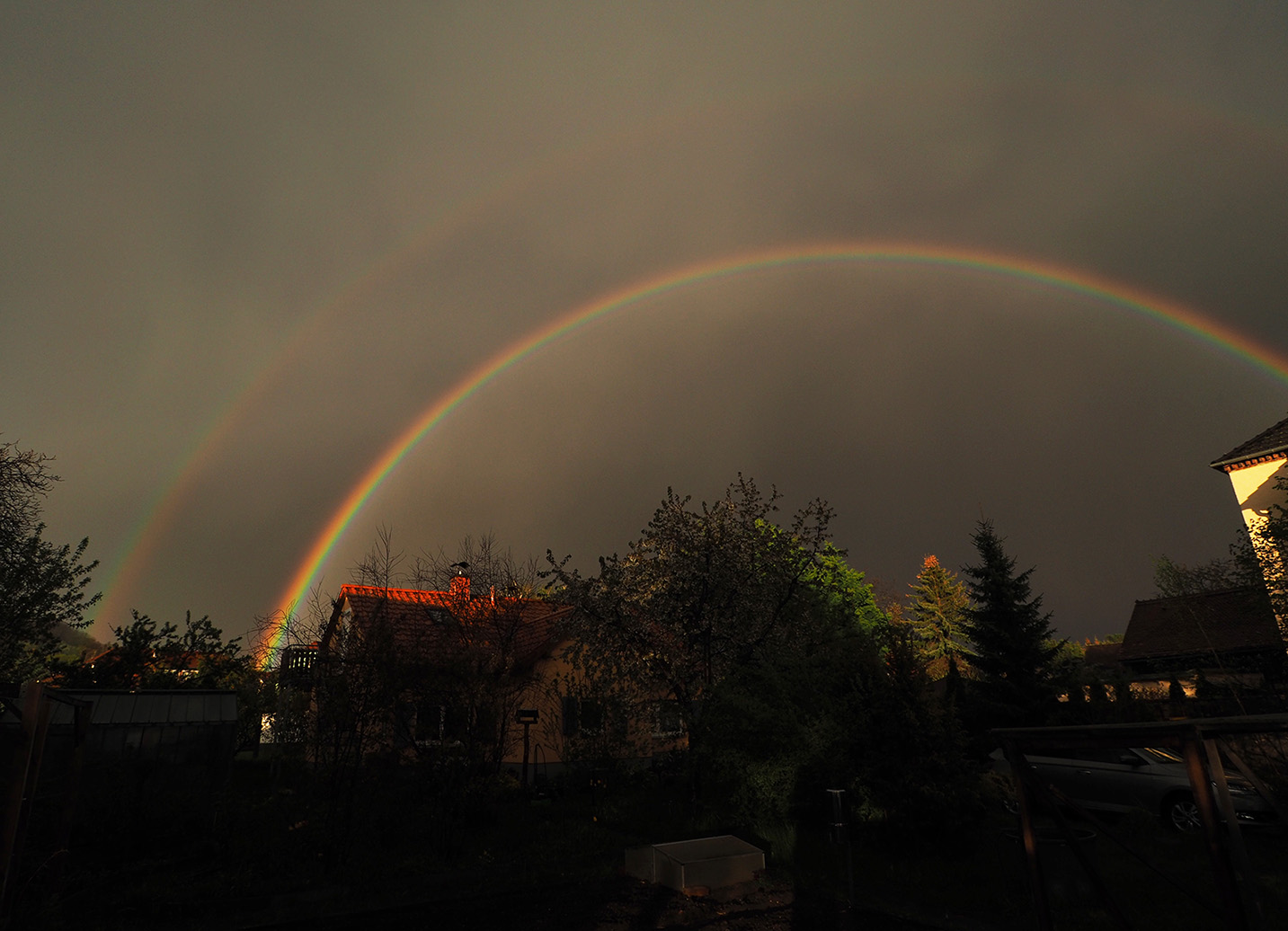 heute wurden wir kurz vor Sonnenuntergang wieder mit einem tollen Regenbogen über Radebeul belobigt.