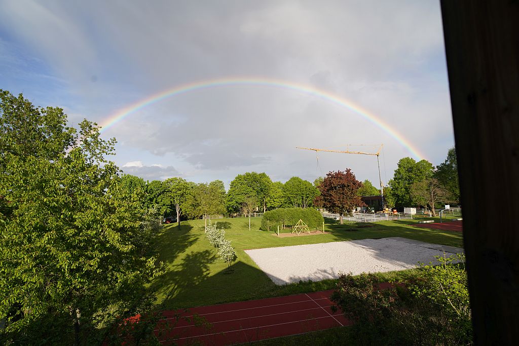 ich suchte das Samyang 18mm für vollformat, montierte es an der kamera und eilte in den 2. stock um den regenbogen als ganzes festzuhalten