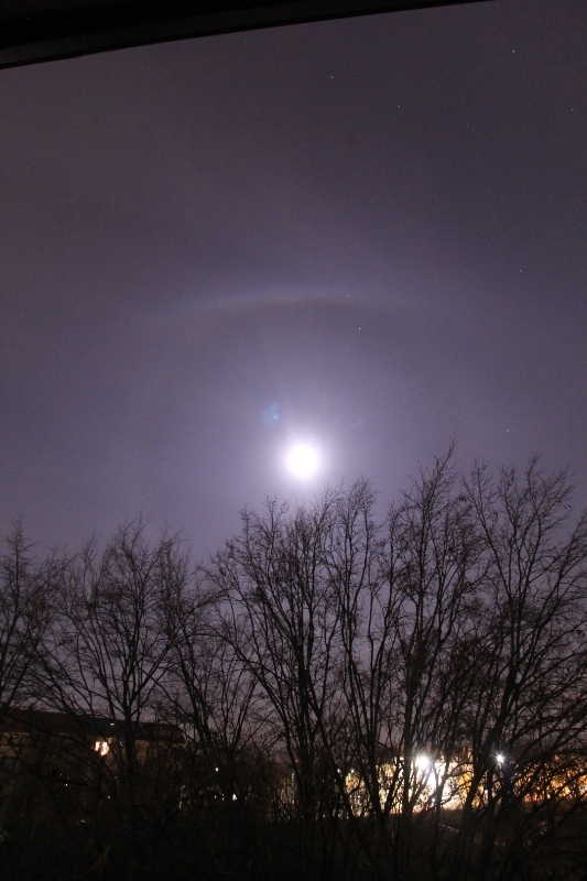 In Leipzig gab es dieses Halo ebenso, immer wieder mal (vollständig) umschrieben. Das Halo war ungewöhnlich hell, im Stadtlicht war das Halo ohne Probleme zu erkennen, sogar ein rötlich brauner Saum war am oberen Teil des Rings / der Umschreibung zu erkennen.