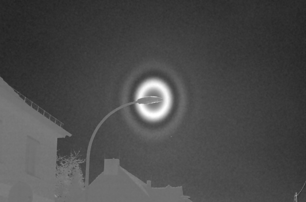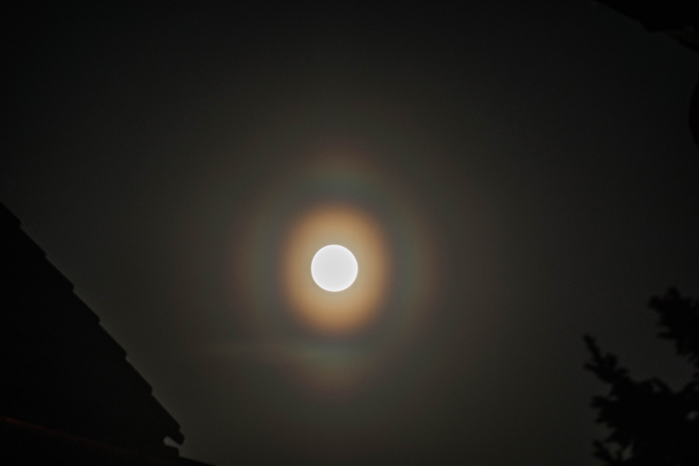 Hallo, liebe Experten, habe ich hier gestern eine Mondhalo fotografiert, oder ist das nur atmosphärisches Wischiwaschi?