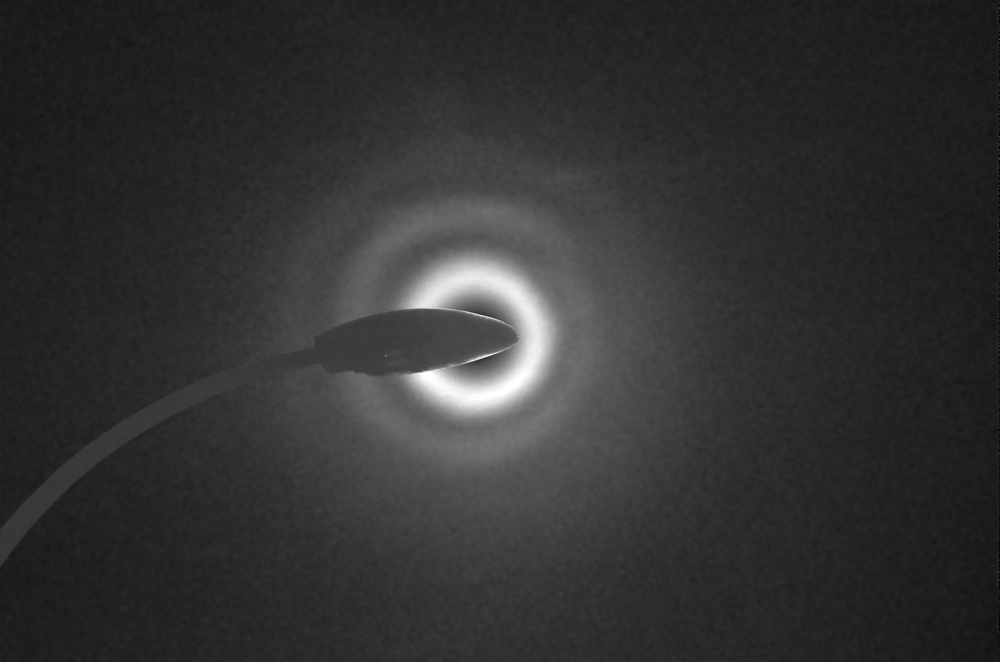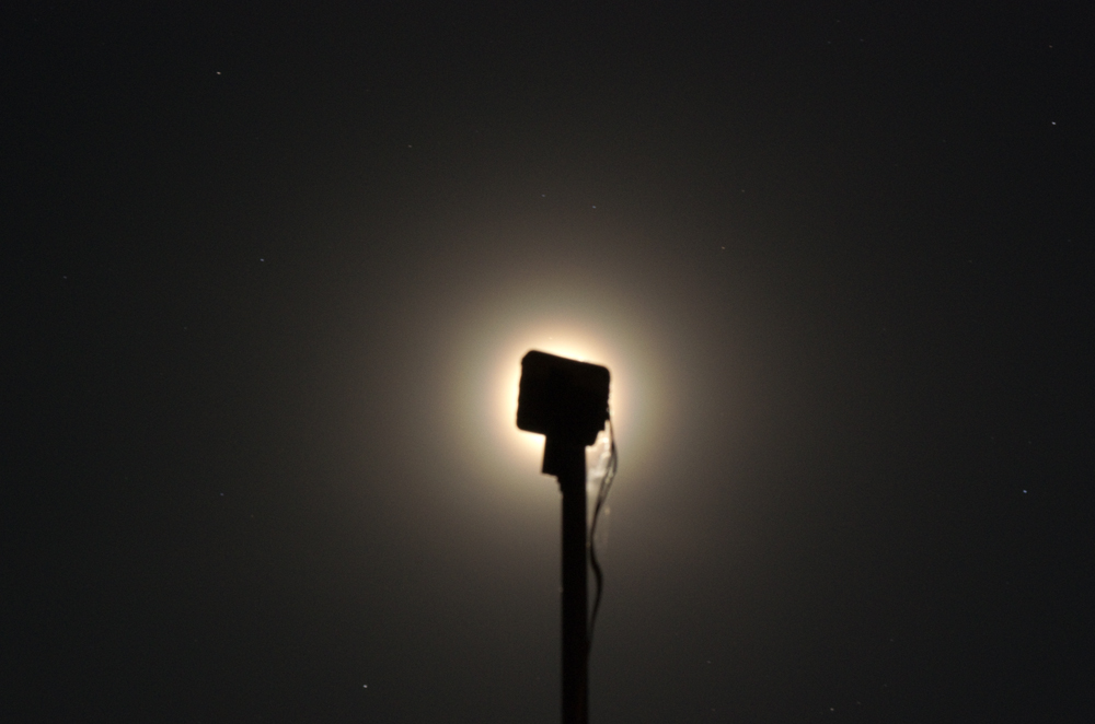heute früh vor der Mondfinsternis und in der Halbschattenphase war hier eine Kiefernpollenkorona zu sehen (03:59 MESZ):