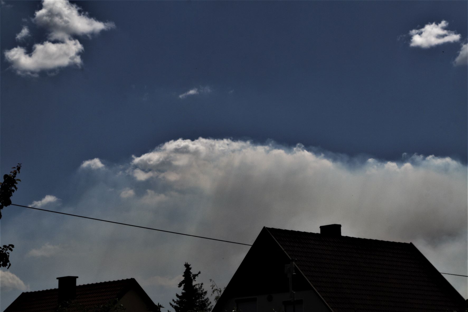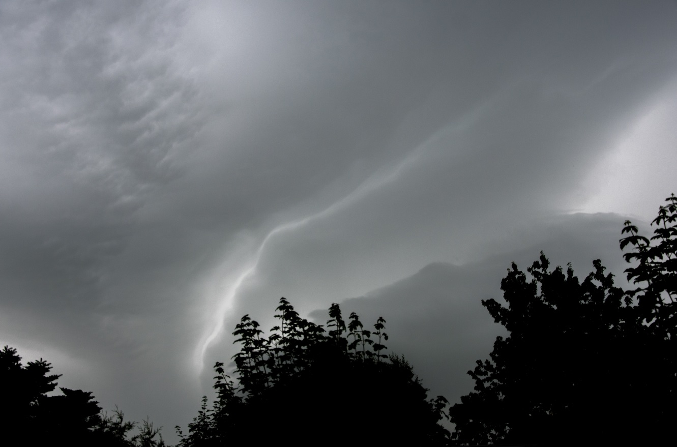 Die Bilder sind von 19:52 MESZ aus Hemmingstedt. Innerhalb weniger Minuten wandelte sich der blau/weiße Himmel in ein Sammelsurium von fantastischen Grautönen. Leider geben die Bilder den 3D-Effekt nur eingeschränkt wieder. Besonders auffällig: die scharf abgetrennten weißen Bänder. Diese „flatterten“ durch die grauen Wolkenknäuel.