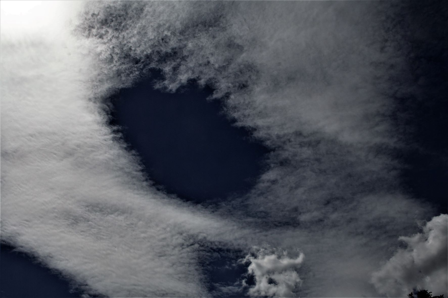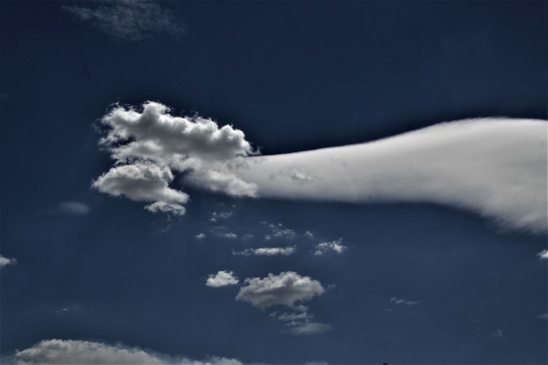 Im Hitzehoch bei einer sehr trockenen NW-Strömung zeigten sich am frühen Nachmittag über dem Wiener Becken in trockener Luft (25%) klar definierte Ac len flo und einige sehr auffällige Verdunstungsvorgänge an tieferen Wolken. Auch eine Korona am Ac flo len kam kurzzeitig zustande.