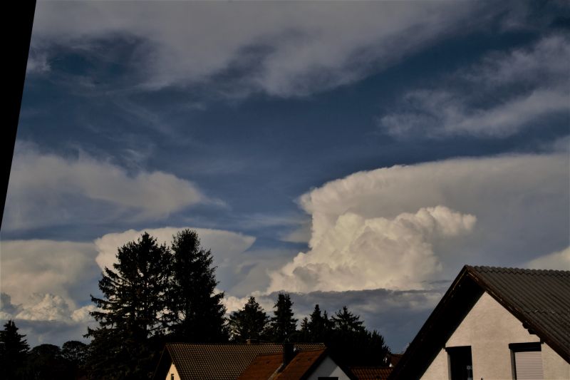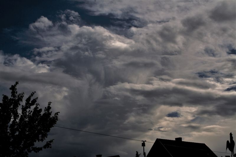 Gestern, Samstag den 10.9. zeigten sich über dem Wiener Becken eine ganze Armada von CB ´s die aber harmlos waren und nur kleine Schauer brachten. Gegenüber der CB´s, die sich im NW über dem Wiener Wald auftürmten, standen dann im Süden völlig andere Wolken, Ac len und Sc mit Virgaschleppen und viel verquirlten Wolkengehänge. In einer Wolke schüttete es nur so, doch der Niederschlag erreichte den Erdboden nicht.
