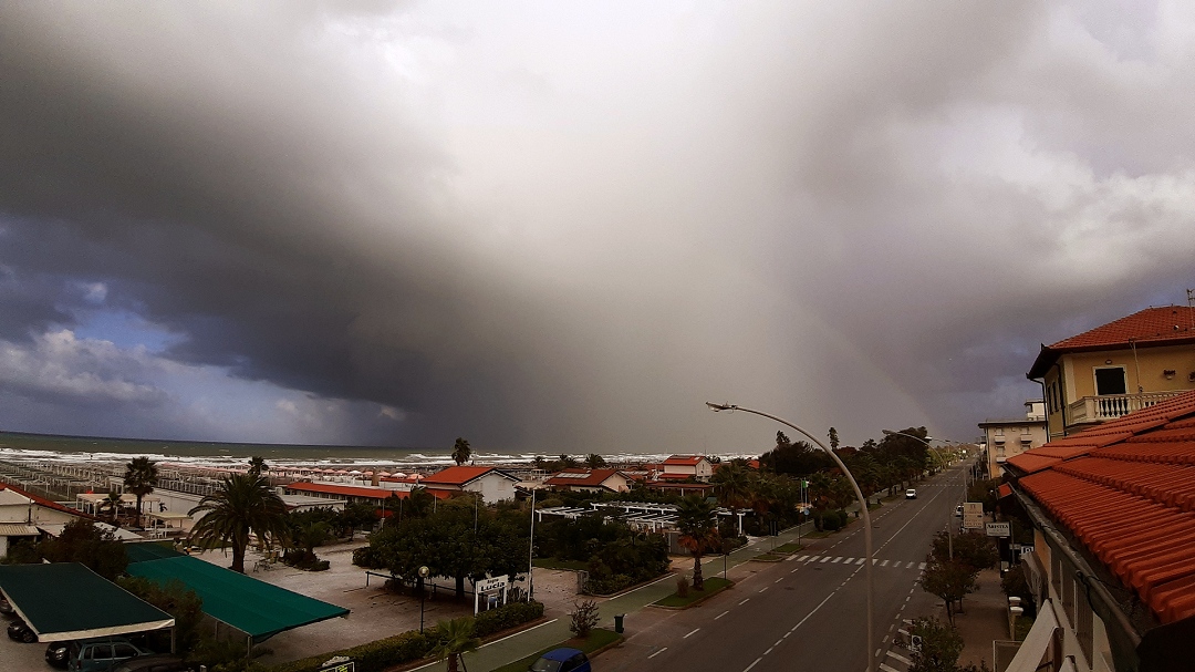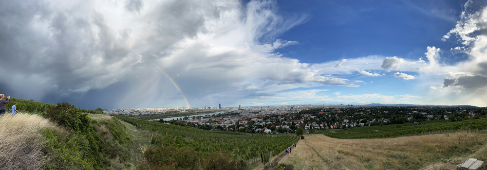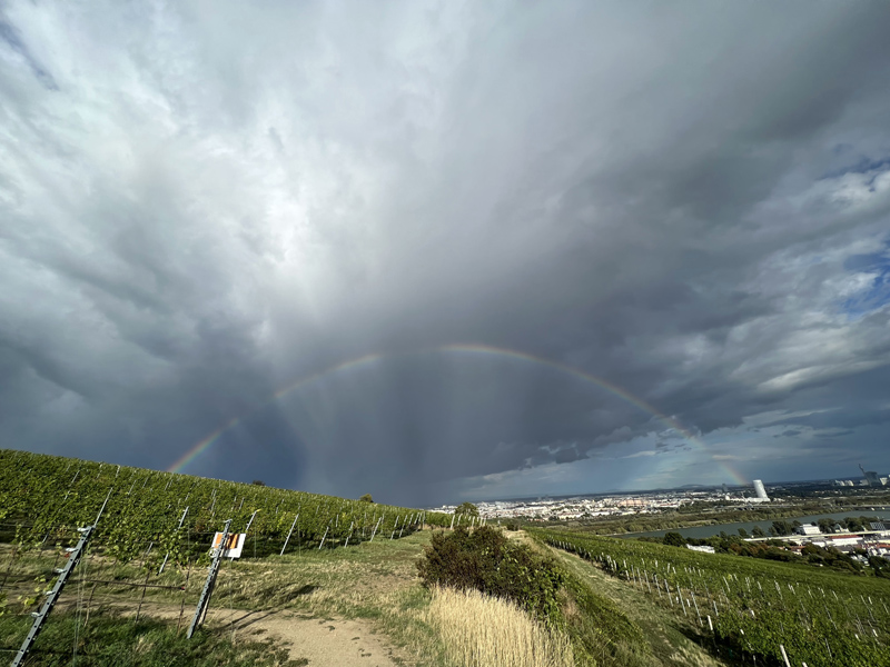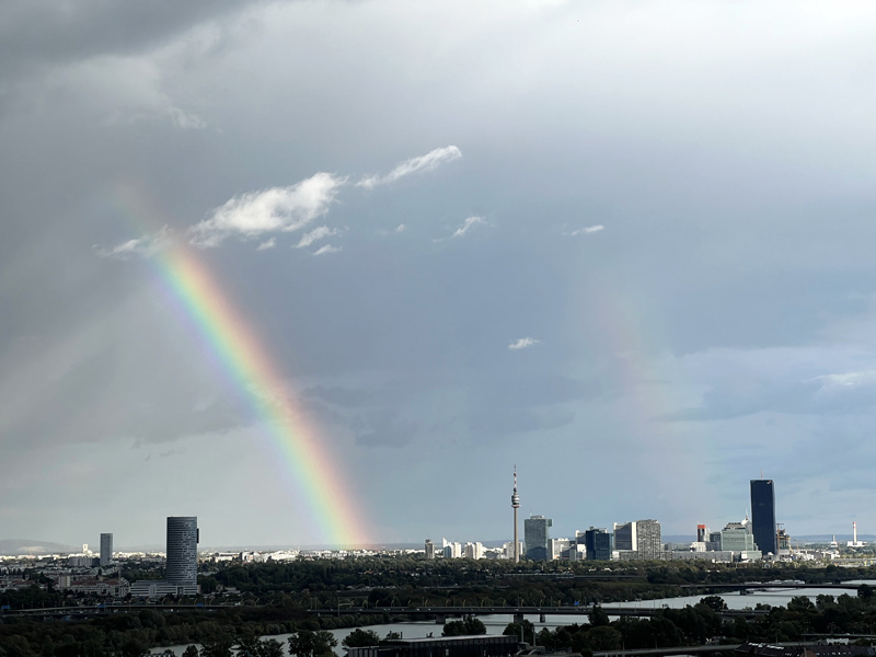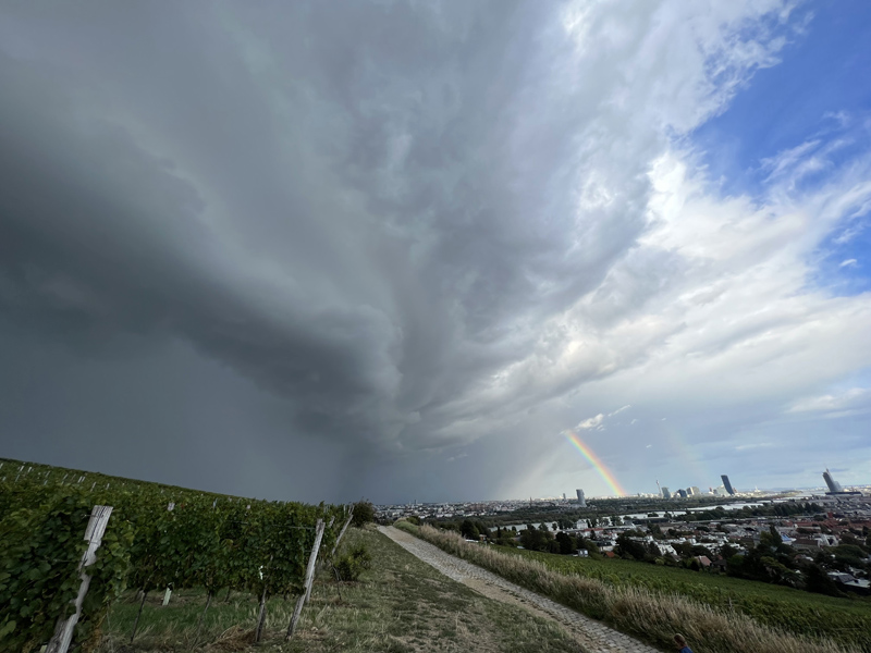 Ähnlich wie von Anette gestern beschrieben, gab's auch heute gewittrige Schauer über Wien und Umgebung, die ein paar sehr fotogene Regenbögen und eine Böenfront mit sich brachten.
