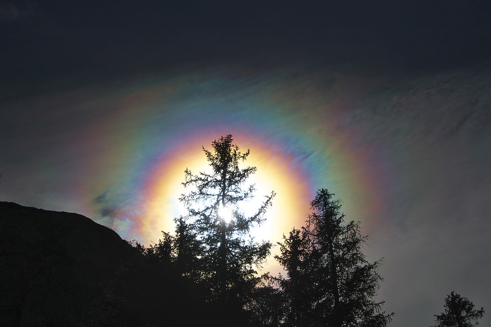 Kleiner Nachtrag vom 13.09.2022, da zeigte sich im Risstal auf der Rückfahrt vom Ahornboden (knapp Österreich) ein herrlicher Kranz, der dann fast nahtlos in einen 22°-Ring überging