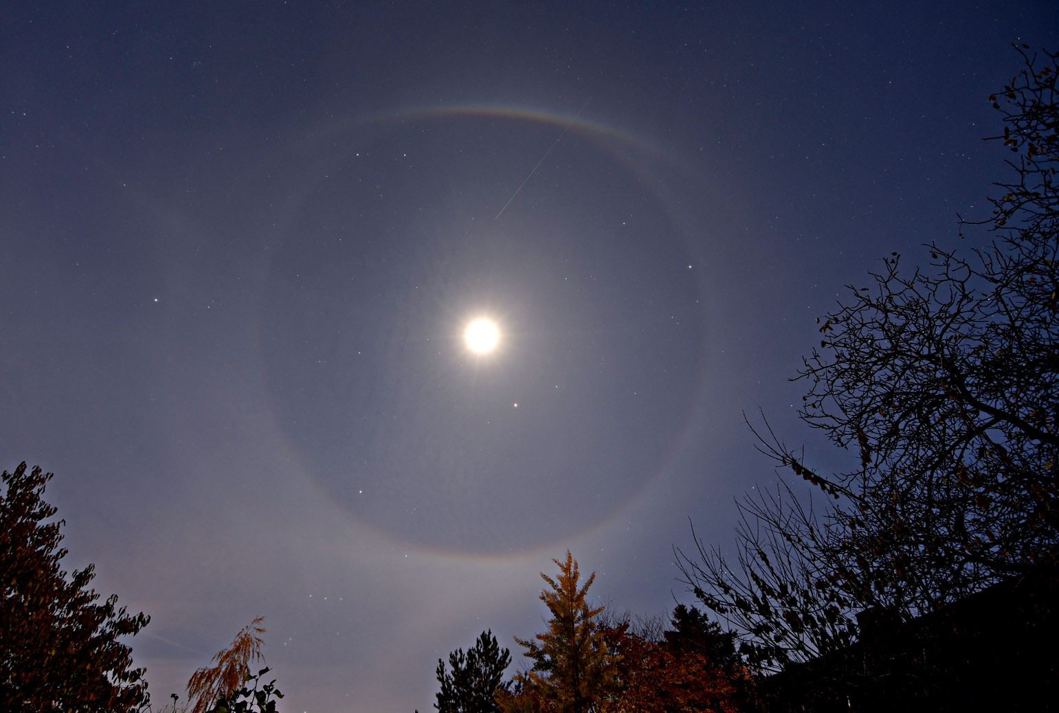 Es gelang dieses prächtige Mondhalo kurz vor der Dämmerung um 6.08 Uhr fotografisch zu dokumentieren.