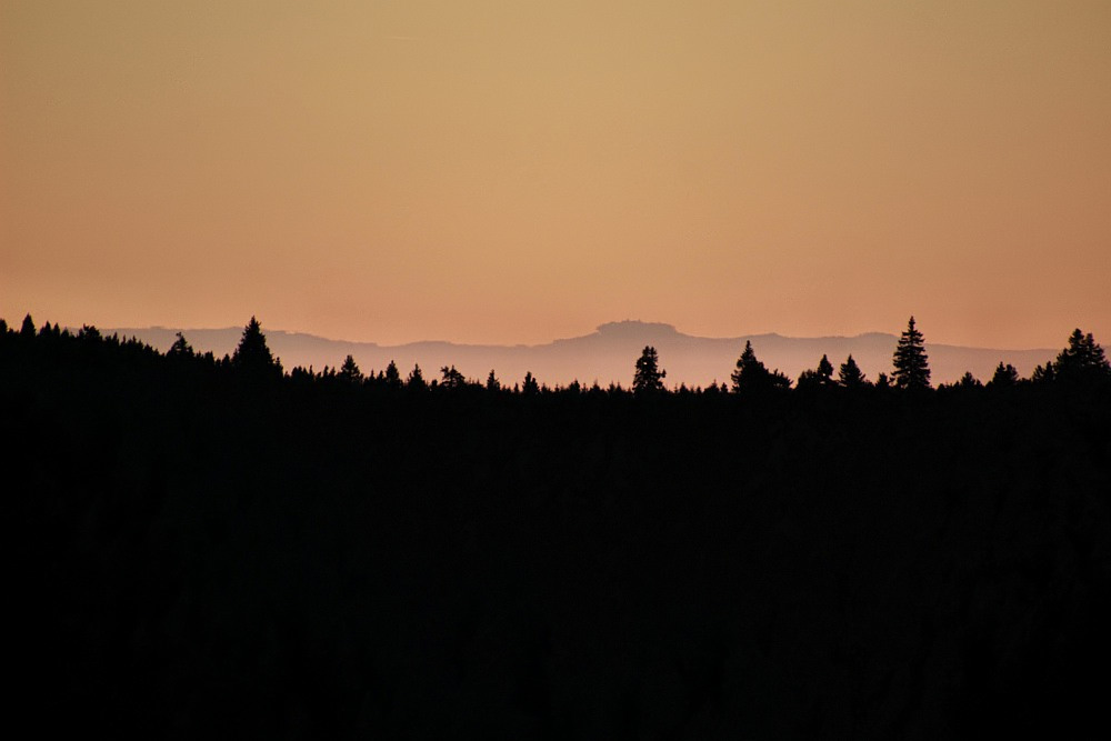 Der sonst oft gespiegelte 160km entfernte Bayrische Wald im Süden (hier mit Großer Arber) war dagegen fast klar erkennbar und hatte nur ab und an ein paar leichte "Beulen"