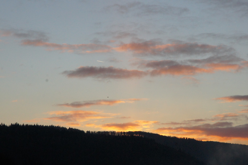 Hier noch das Morgenrot vom 17.01. hier in Heidelberg. Zitweise zeigte sich auch eine Sonnensäule – entweder in Virga oder in Eisnebel, es waren keine Cirren vorhanden.