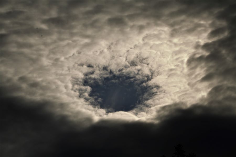 am 15.5.23 zeigte sich nachmittags ein Punchhole-Himmel und Irisieren um die Sonne herum am Ac floccus lacunosus - wir hatten eine kleine Verschnaufpause zwischen den Italientiefs.